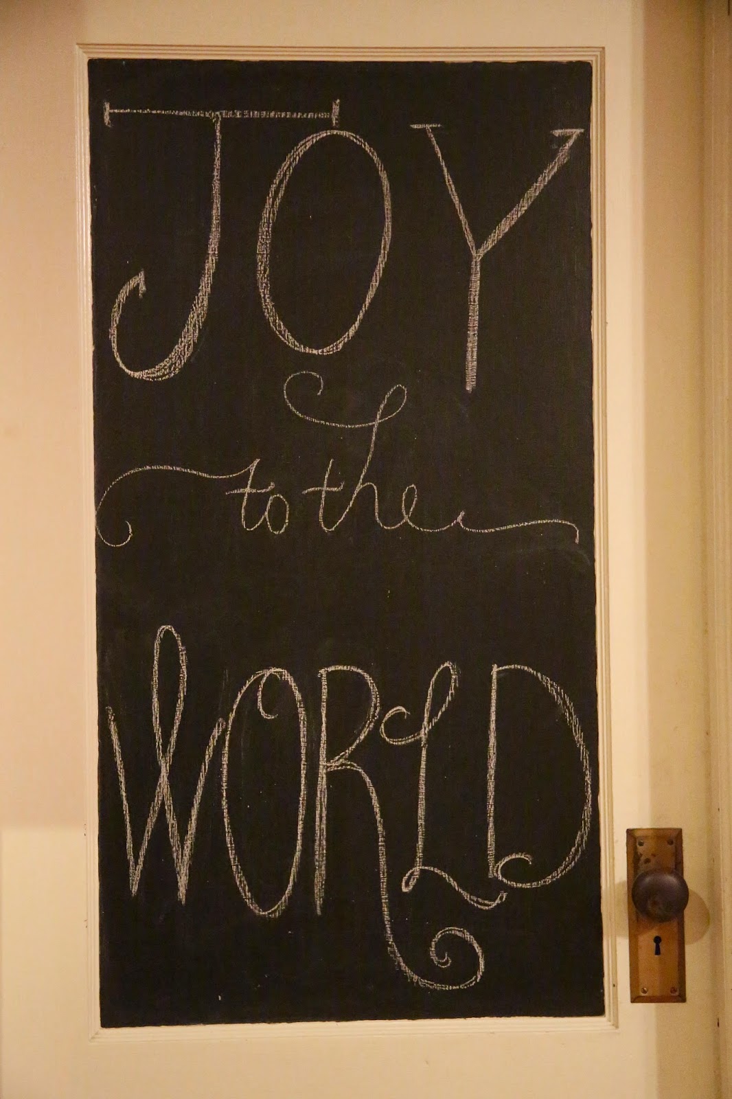 On our chalkboard door, I scripted the classic phrase that exemplifies what Christmas is all about.