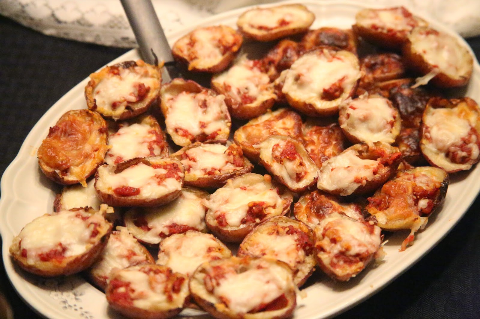 I shall introduce you to each of the scrumptious dishes that graced our table. And let me say, I cannot even describe how utterly tasty each and every dush was, and how our taste buds (and tummies:) throbbed with enjoyment all evening long. First….meet Chelsy’s Italian Potato Skins.