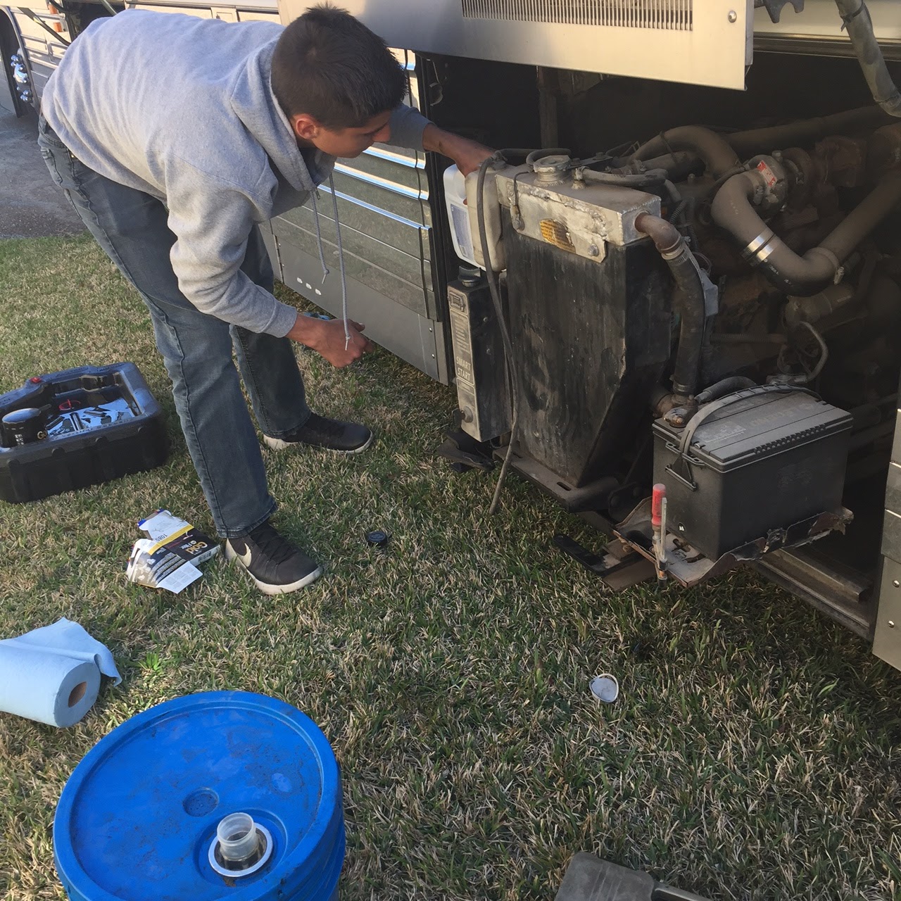 ….if we told you that we got stuck this time, in a regular grassy church side lot, because several certain family members let the shower water run too much, and created a small pond around the back bus wheels?