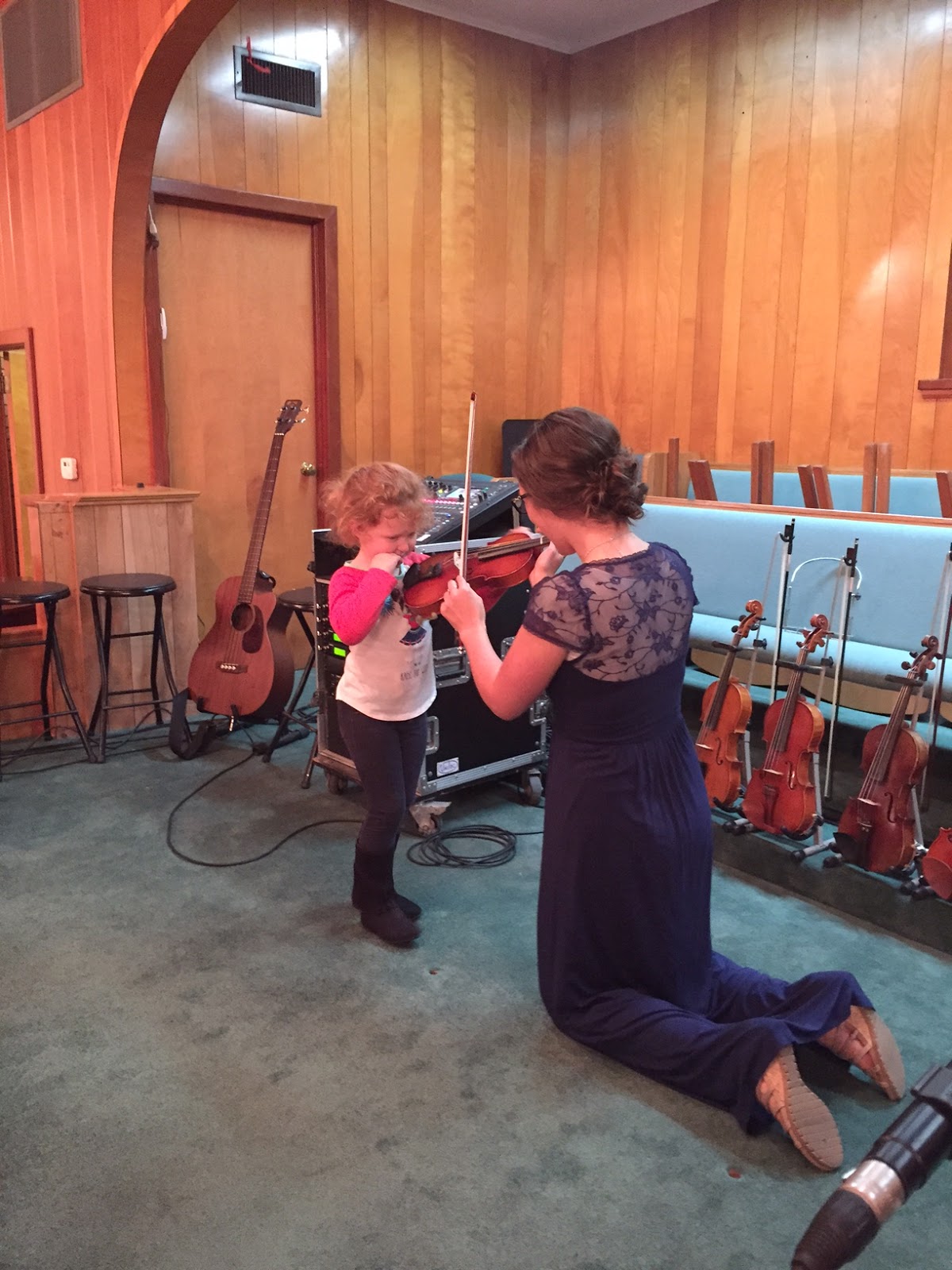 Allison giving a little love to a future miss fiddler from one of our audiences.