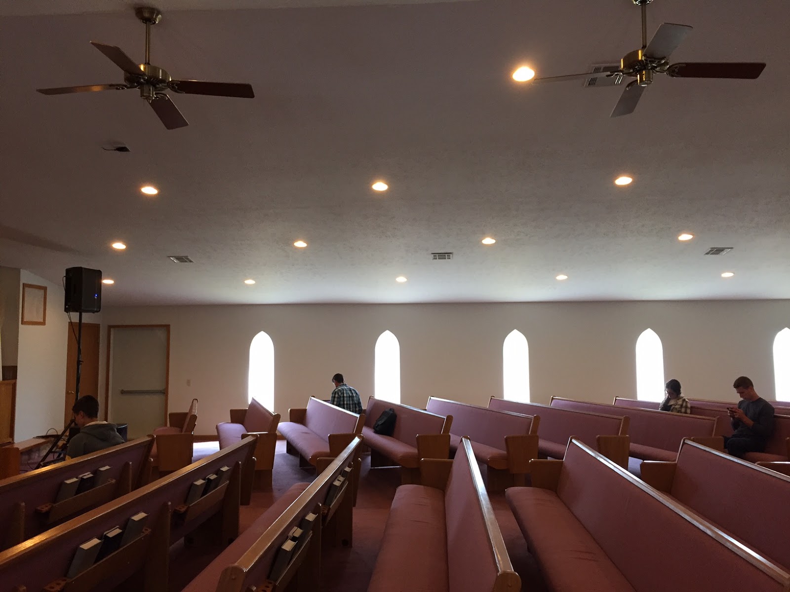 At a church, all set up and ready to go andddd….they have wifi! Whereupon everyone connects. =)