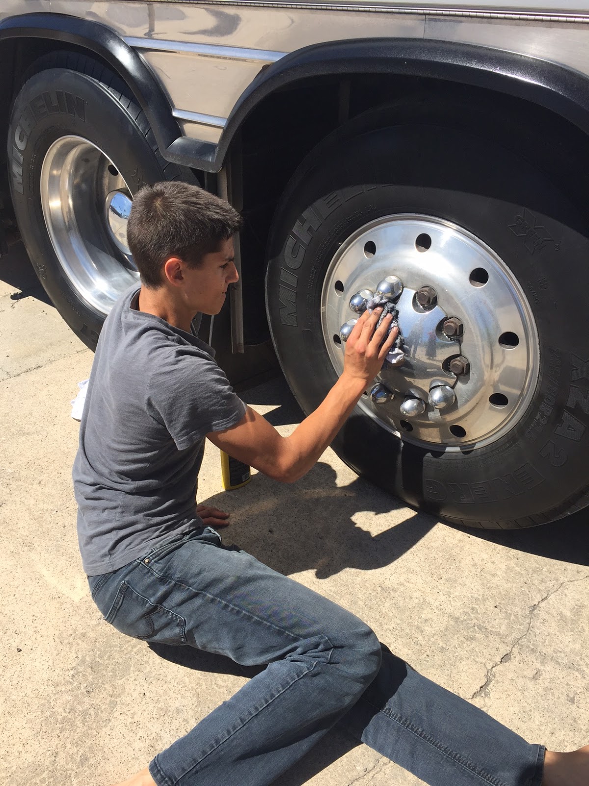Mitch, just hang in’ out on top of the bus. (in all reality, up there to remove branches out of our path)!
