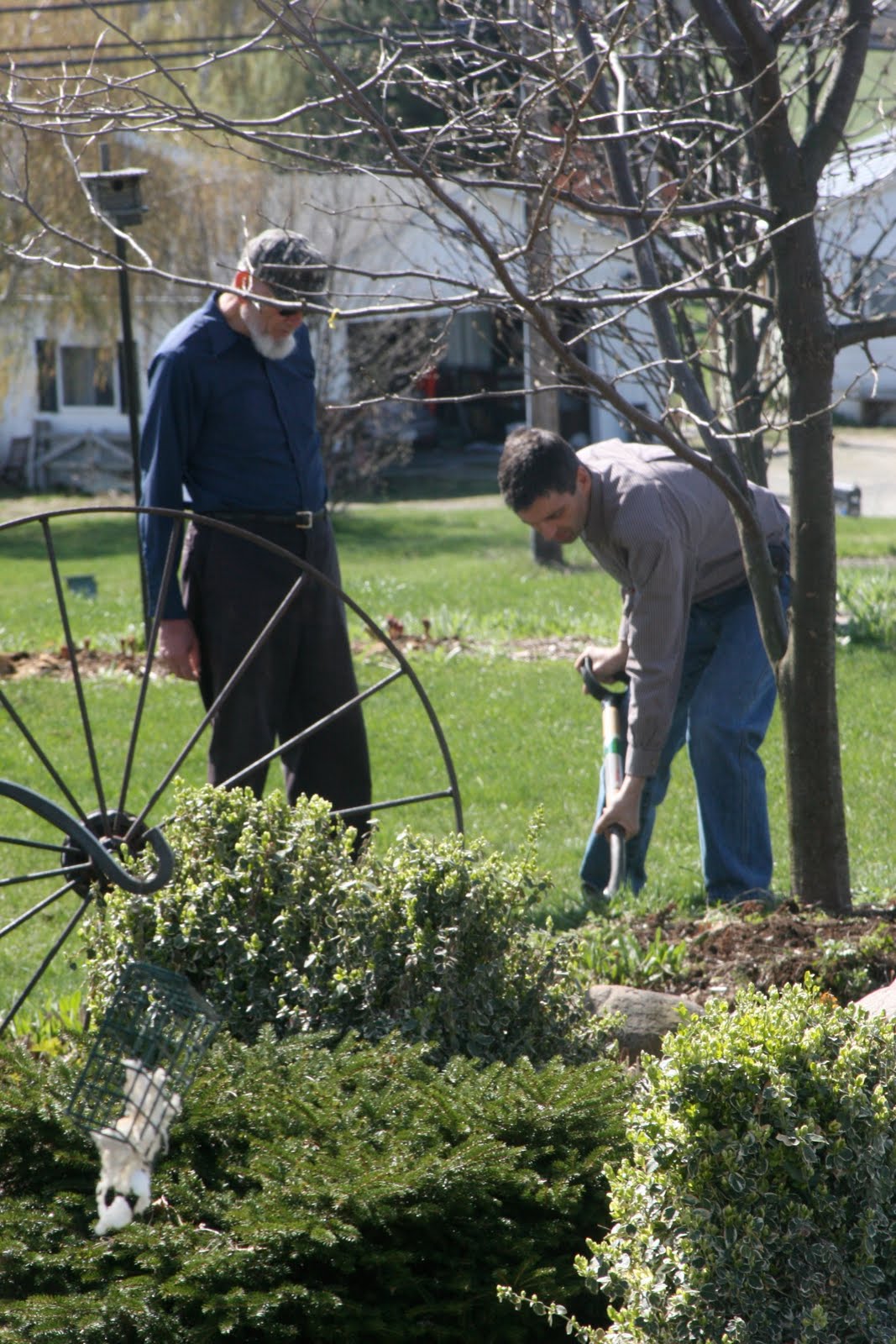 Mitchell helped my father, who is an avid gardener, put up a fence by his peas.