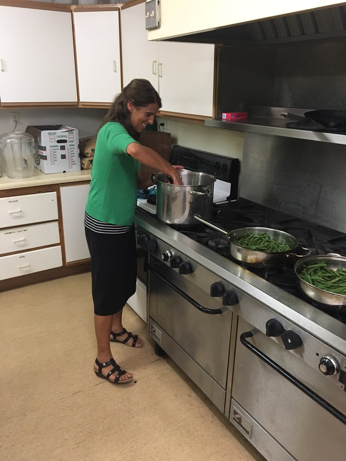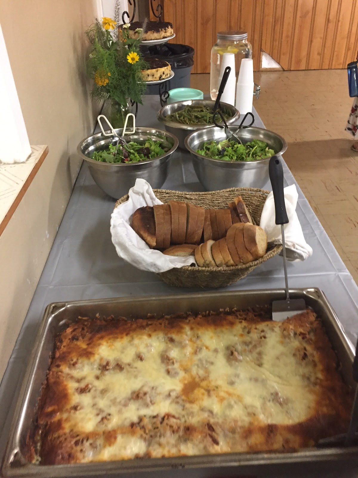We made the rehearsal dinner—an italian feast of lasagna, garlic bread, green beans, salad, and cheesecakes.