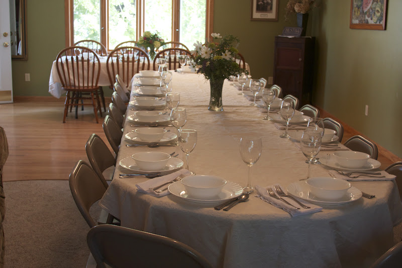 We’ve been…..harvesting garden produce, mulching & weeding the gardens/orchard, canning, hosting a widows banquet for widows & single women from our community,& cleaning both indoors & outdoors in preparation for Labor Day, among other things.