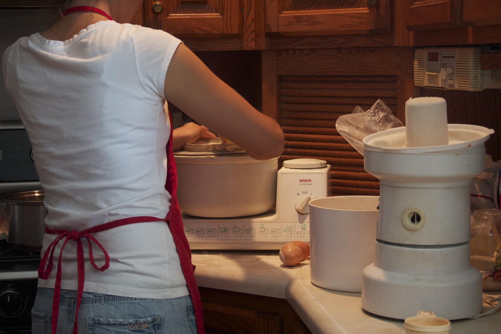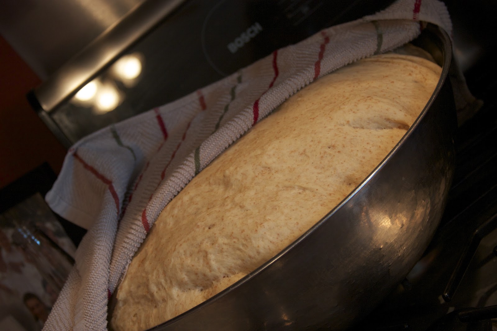 Mixing the bread dough in our trusty Bosch mixer