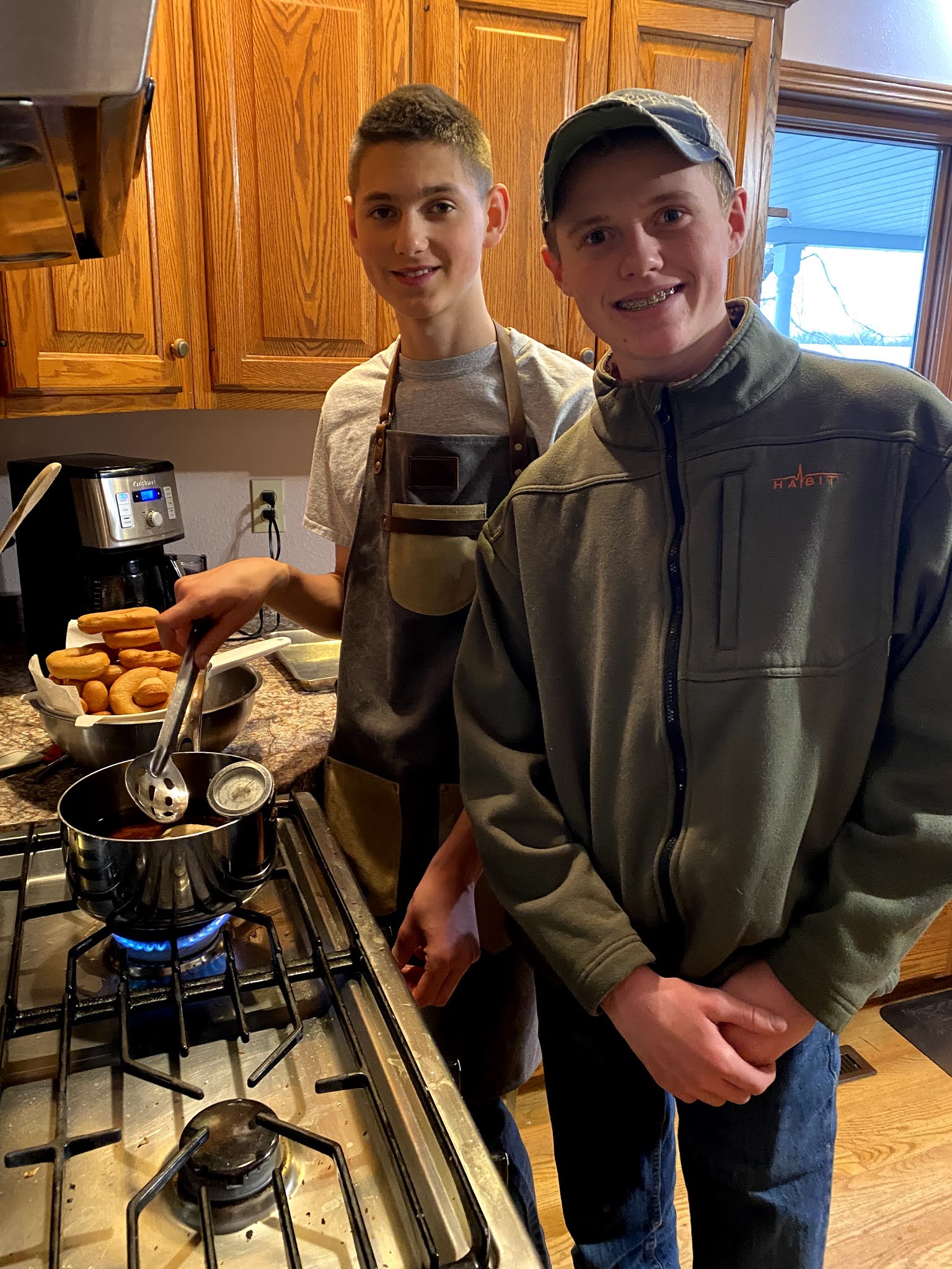 Frying donuts!