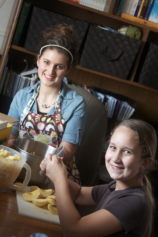 Allison and Breanna cutting up apples for Allison’s famous apple pie