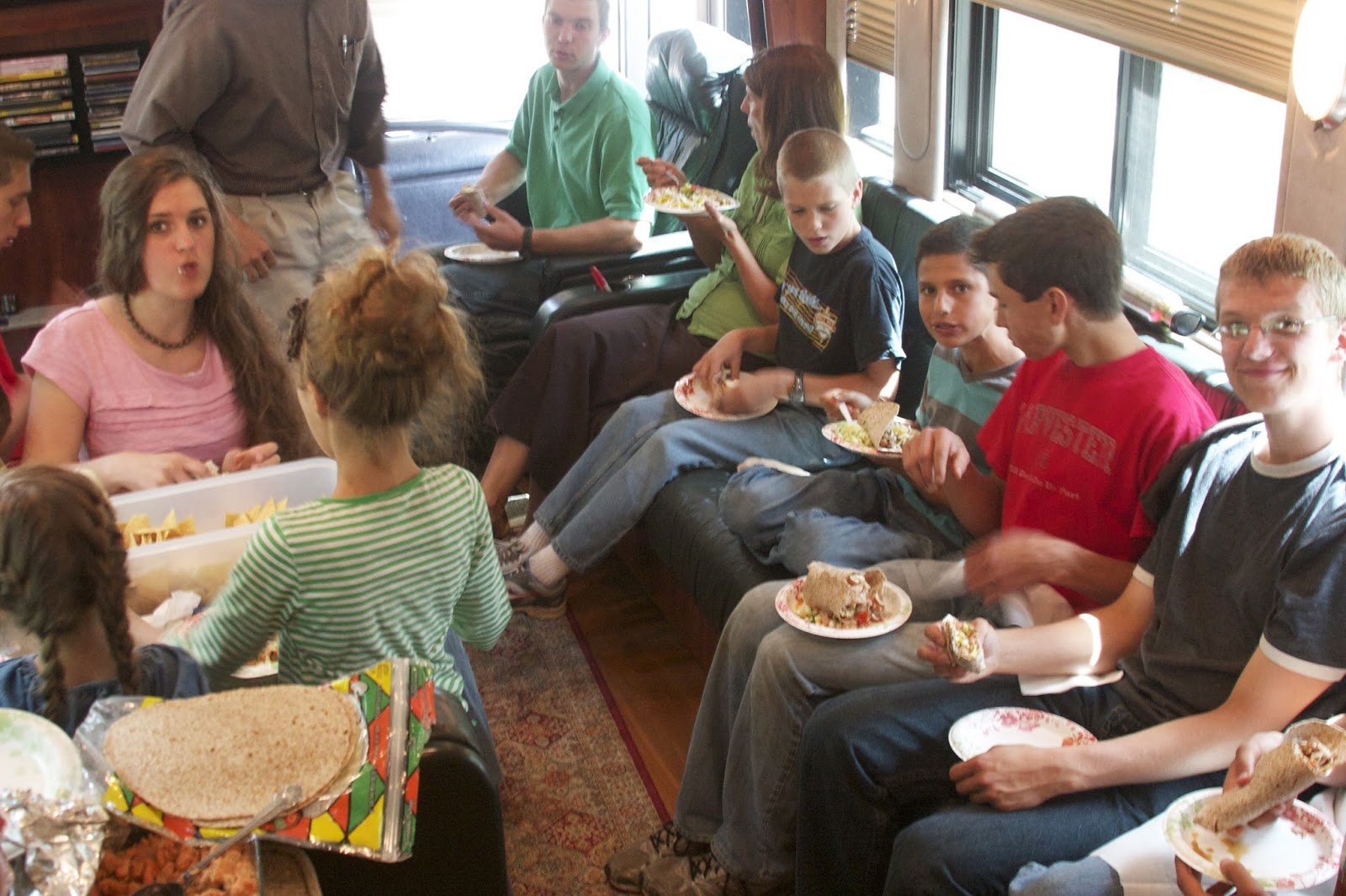 Meal times in the bus are kinda crazy, trying to get everyone squeezed in!