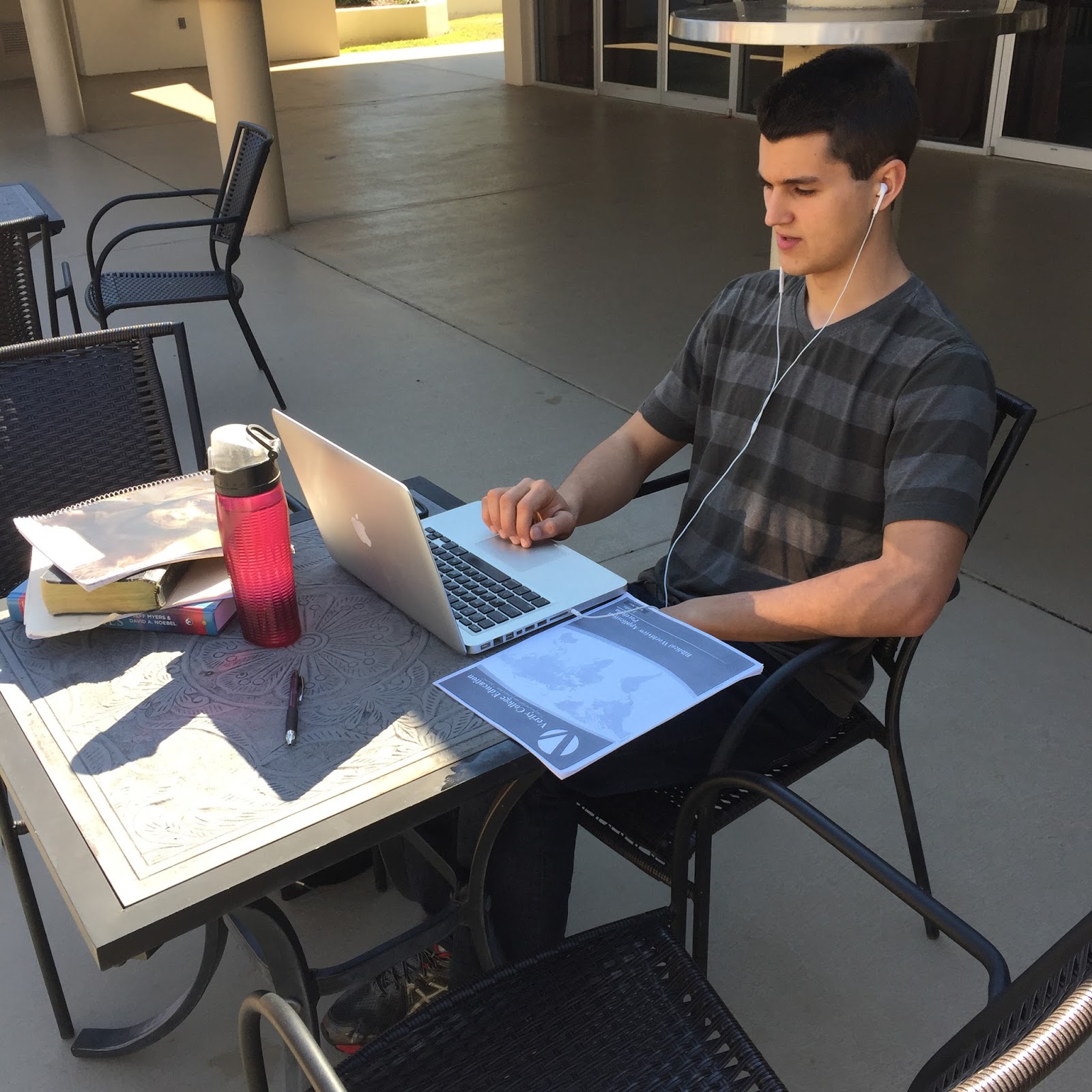 Josh has been extremely diligent with his studies. He is the first one of us Bontragers to pursue a college degree, and doing this while on tour, in addition to campaigning and concerts, is not for the faint of heart! He studies everywhere and has been taking CLEP tests at several colleges along the way.