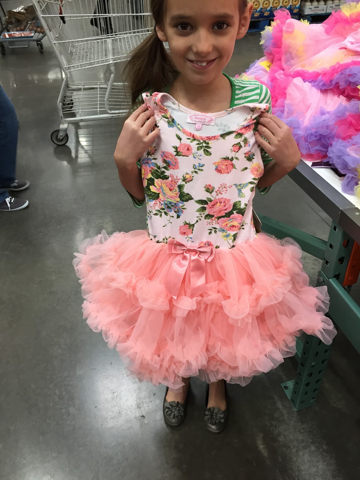 We found this very fun dress and texted a picture to dad that said this, “Found this dress for Rebs. We’re thinking she can wear it for the new concert outfit. Thoughts? Too much poof or not enough?”