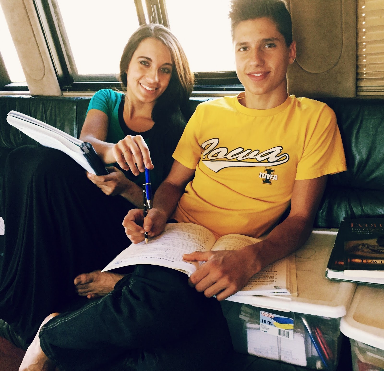 Denver + I, working together on scoring his schoolwork. Denver has been very diligent and his hours and hours of study are paying off! He is on track to graduate highschool in August.