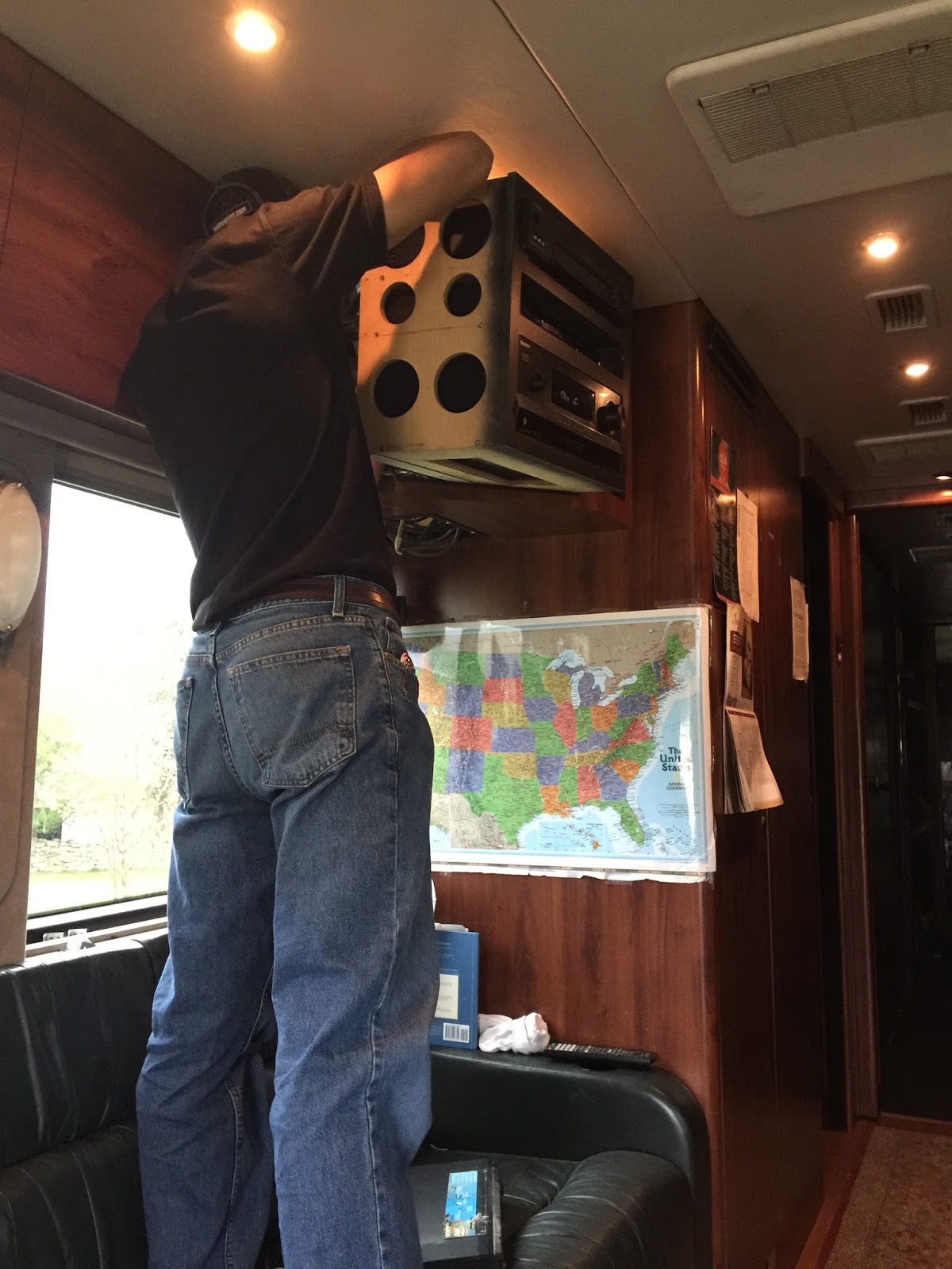 Carson, our tech guy. He fixes anything and everything from lights to toilets to oil to engines to our bus surround sound. (pictured above) We are so grateful for his skills!