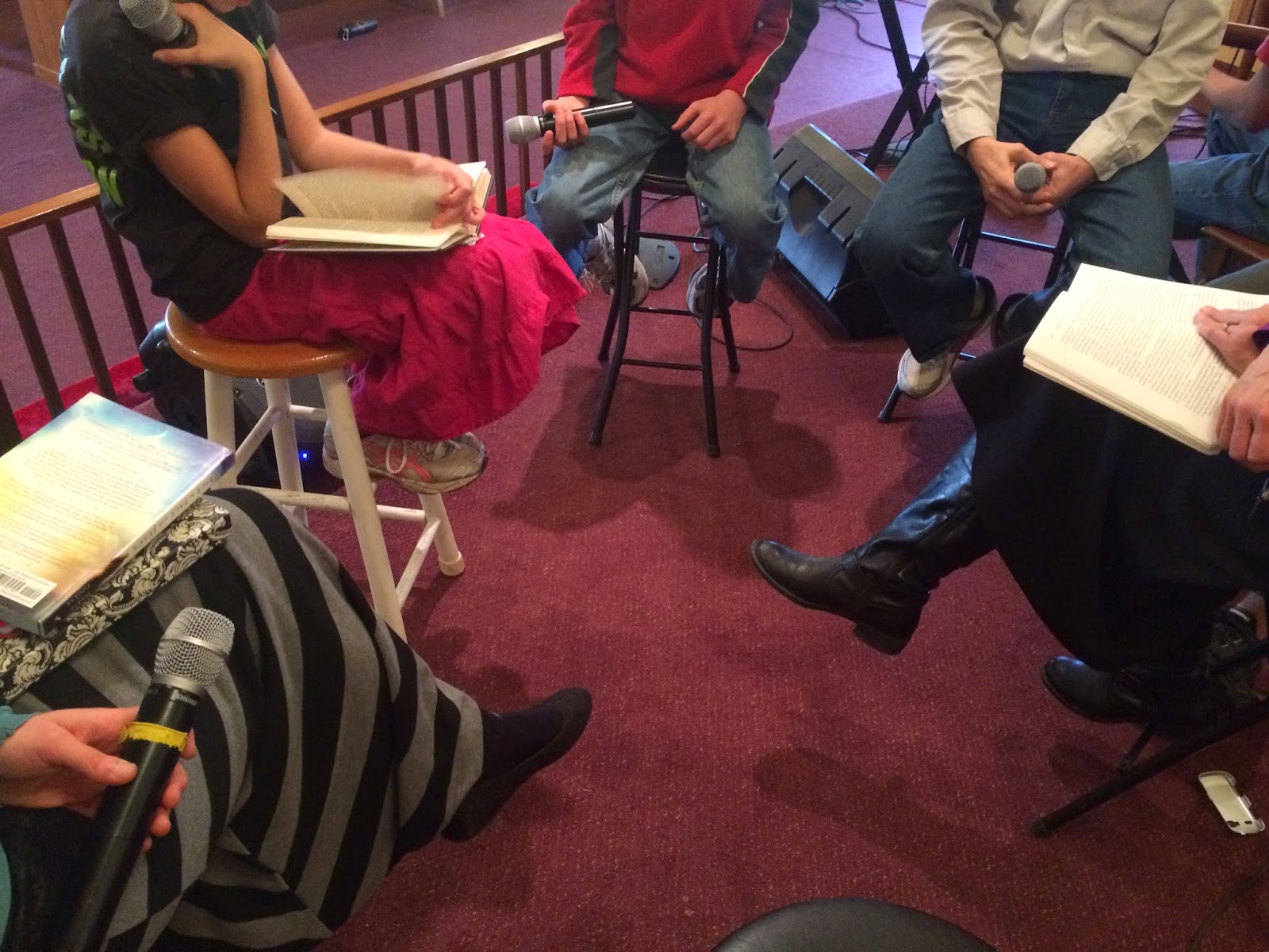 …while the female sector of the family are buried in the books during the various instrument licks. Invariably though they get so immersed in their books that they forget to sing at the proper times, which results in mild scoldings from the males. =)