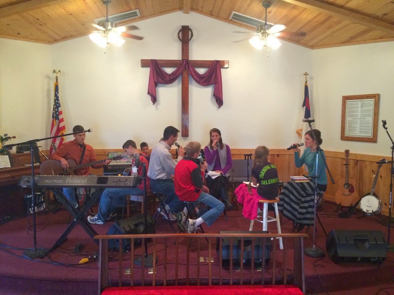 I took a few pictures of this practice we had at a little country church in KY. The above picture is typical-instrumentalists are serious + focused…..