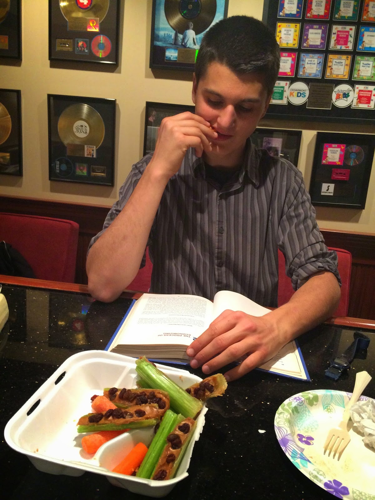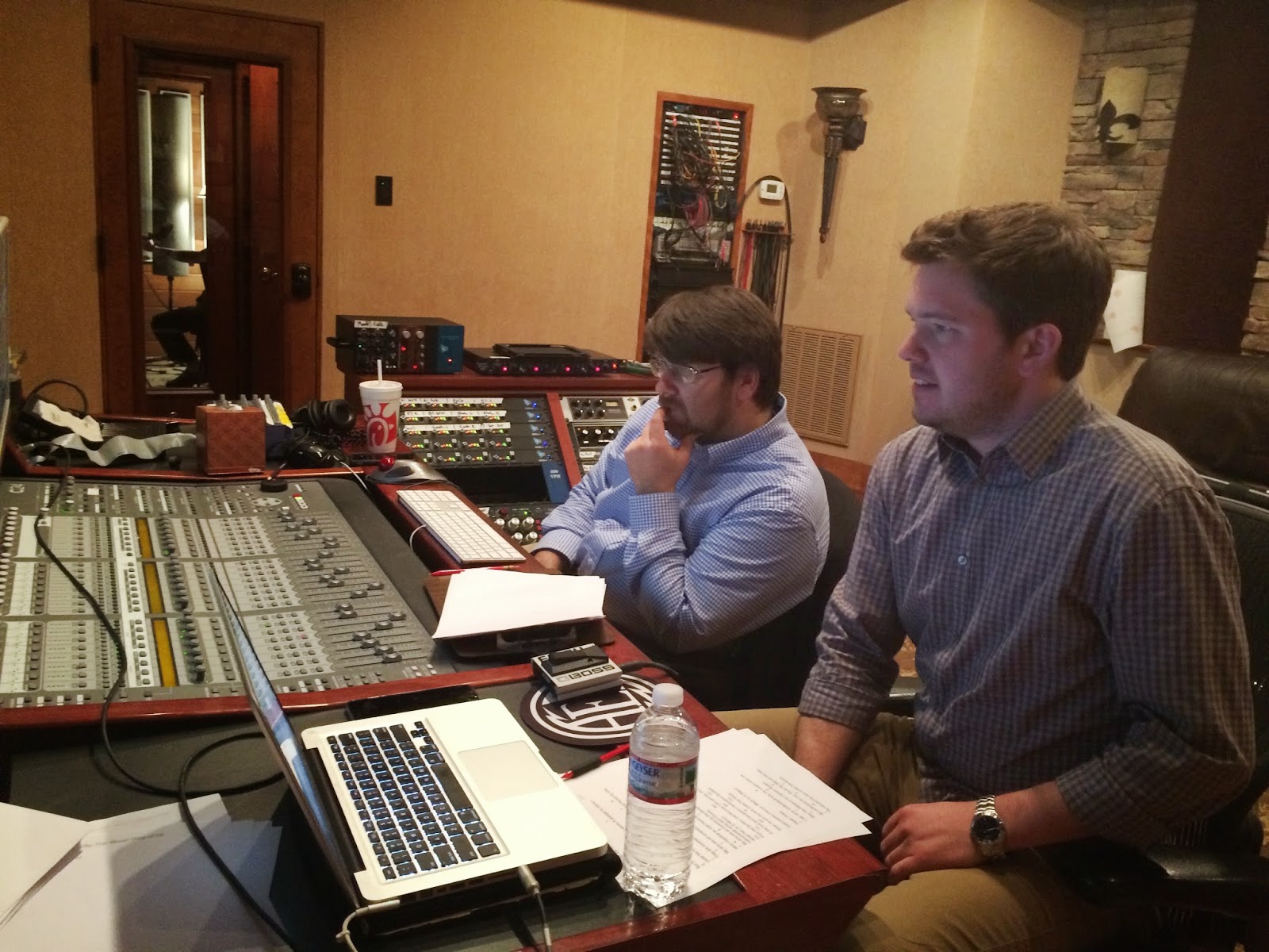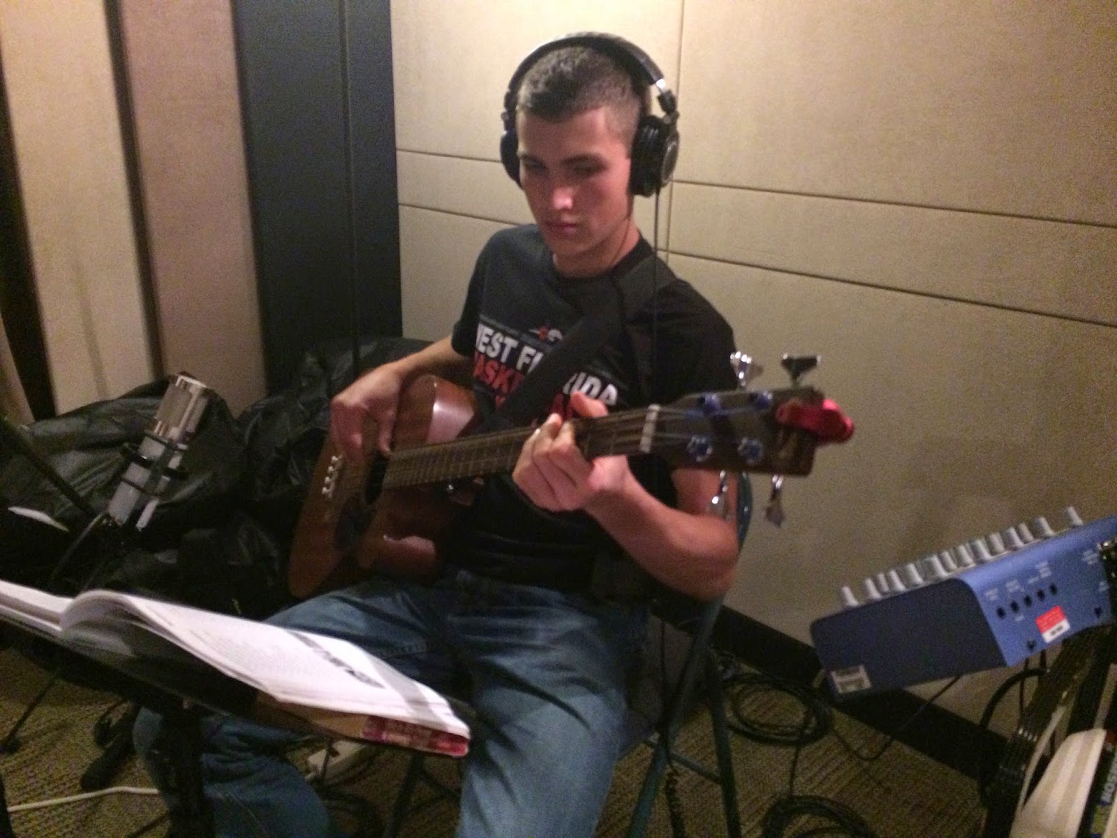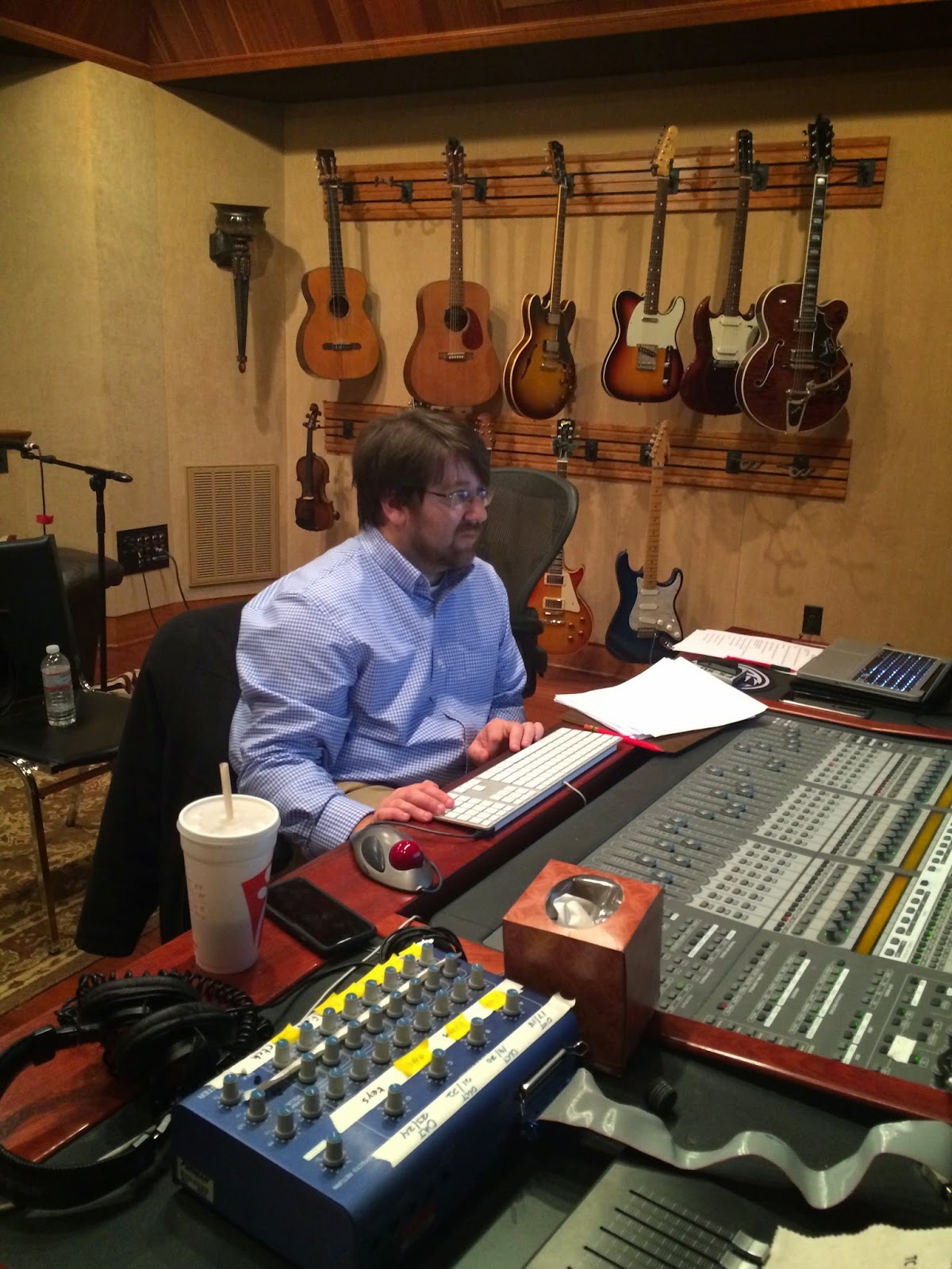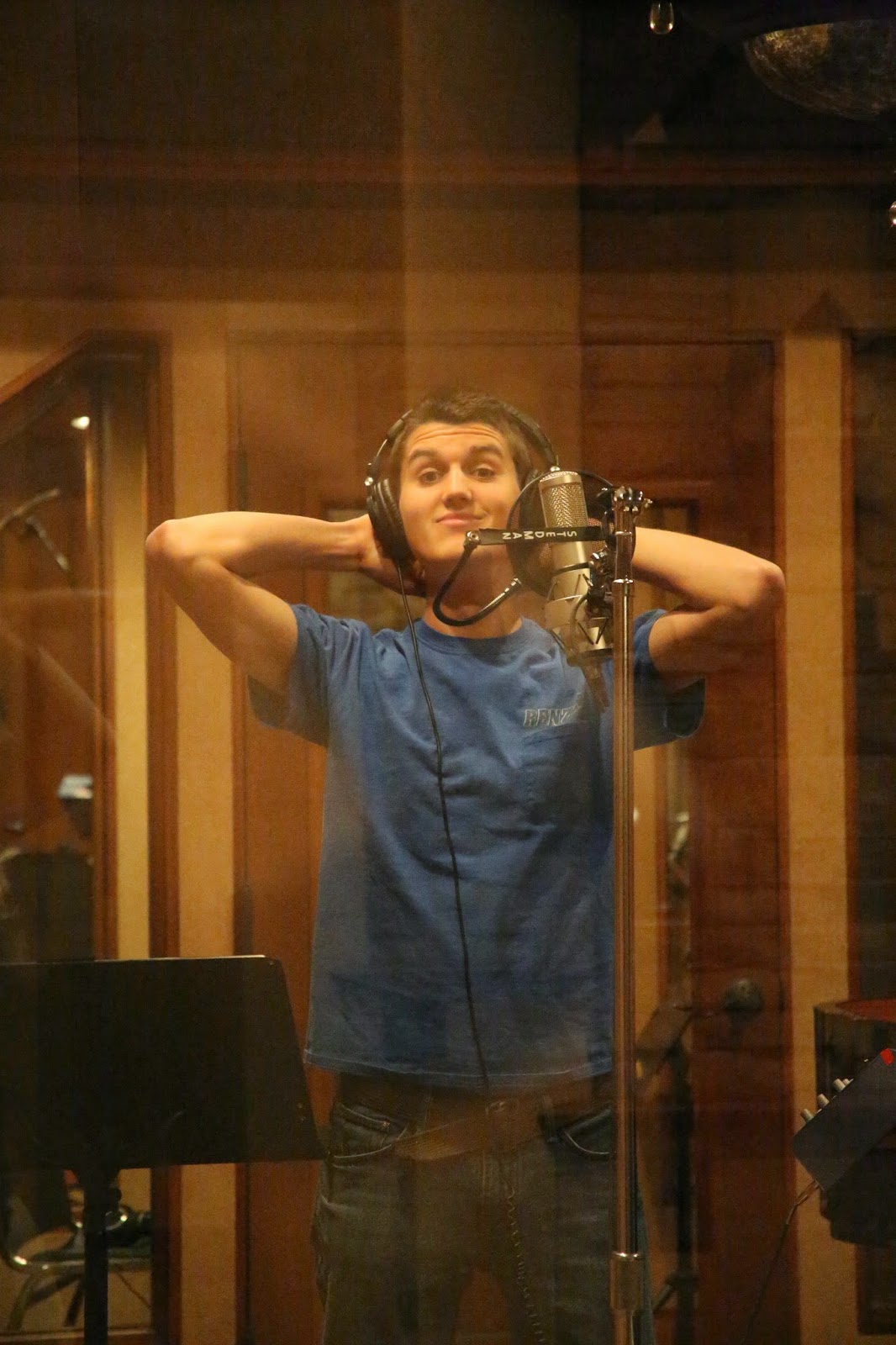 Carson….looking pretty serious! Carson is perhaps the best multi-tasker of all us instrumentalists! He was probably studying Spanish while he recorded his bass parts.:)