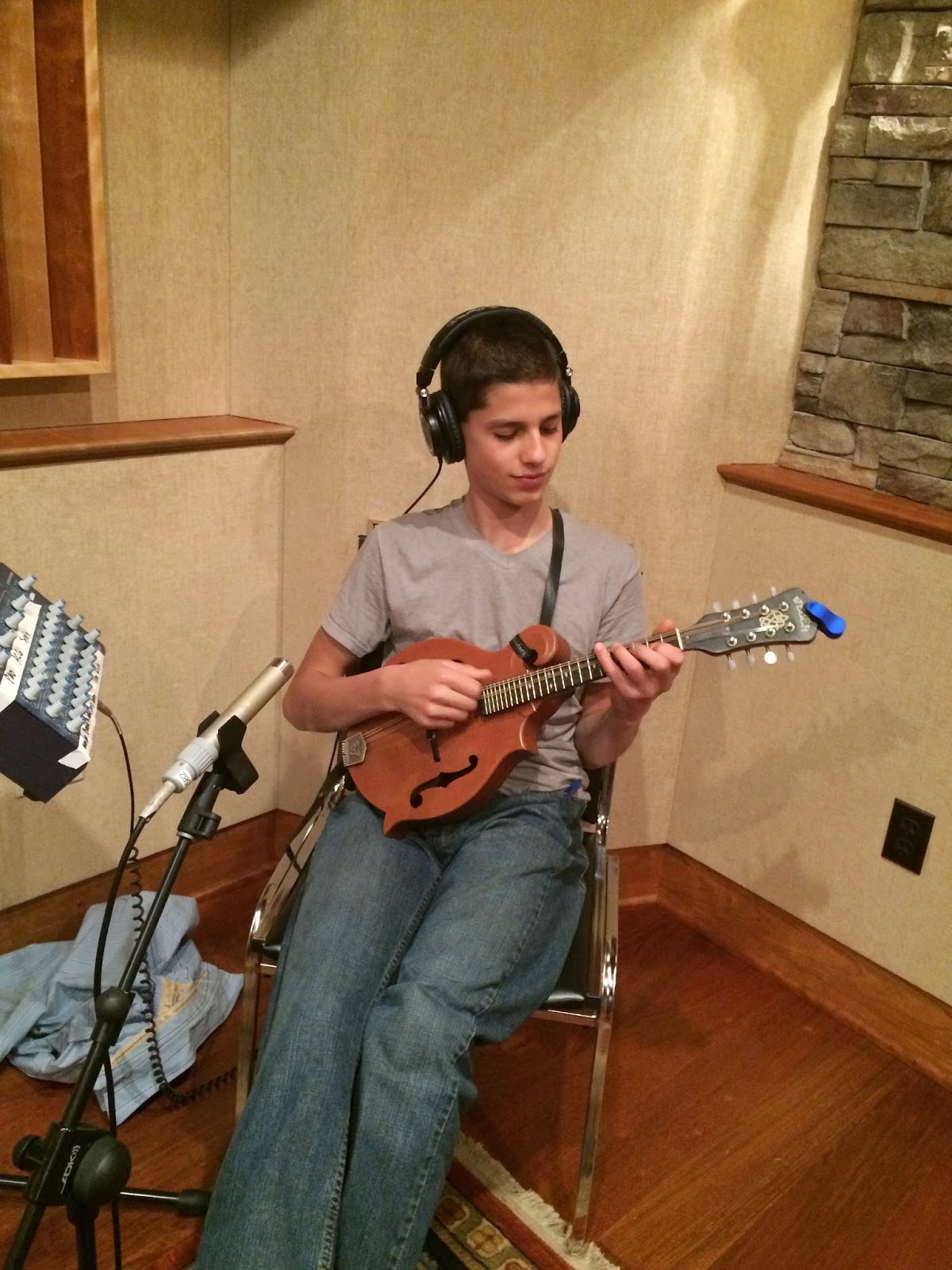 Denver looks pretty comfortable here! He did a great job on his first time recording mandolin parts.